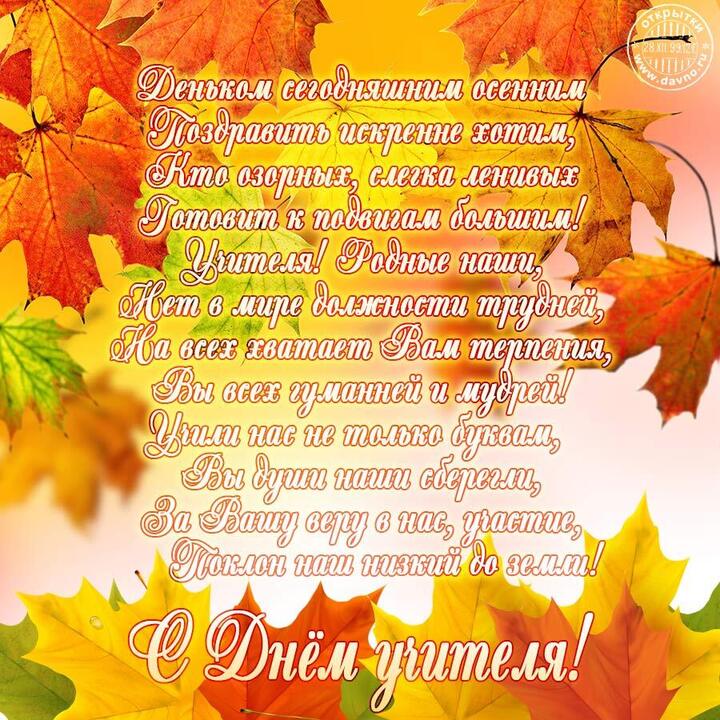 Ежегодно 5 октября в России отмечается День учителя — профессиональный праздник работников образования. В этот день ученики и родители поздравляют педагогов, дарят цветы и открытки, а в школах проходят торжественные линейки, концерты и часто — Дни самоуправления, когда старшеклассники проводят уроки вместо учителей.