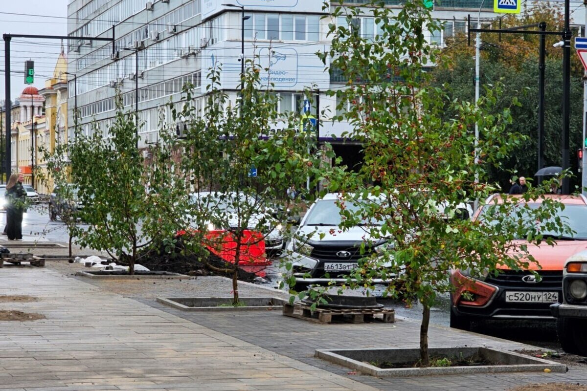 На поперечных улицах исторического центра Красноярска началось озеленение